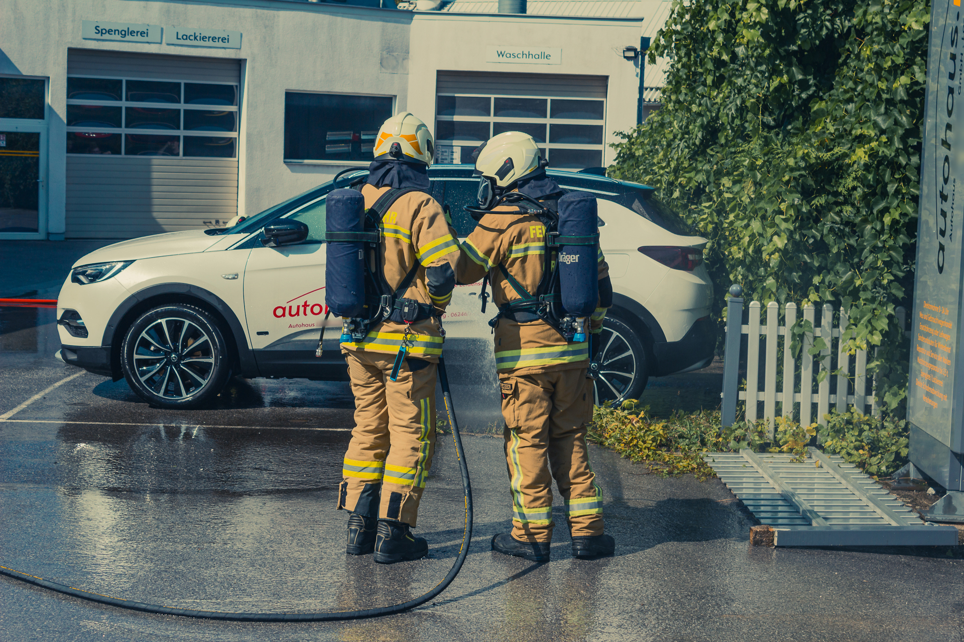 Am 23. August um 15:20 Uhr wurden die Freiwillige Feuerwehr Grödig und der Löschzug Fürstenbrunn via Sirene, Ruftonempfänger und BlaulichtSMS von der LAWZ Salzburg zu einem Fahrzeugbrand alarmiert. Bereits in der Alarmierung wurde uns mitgeteilt, dass es sich bei dem betroffenen Fahrzeug um ein Elektrofahrzeug handelt.