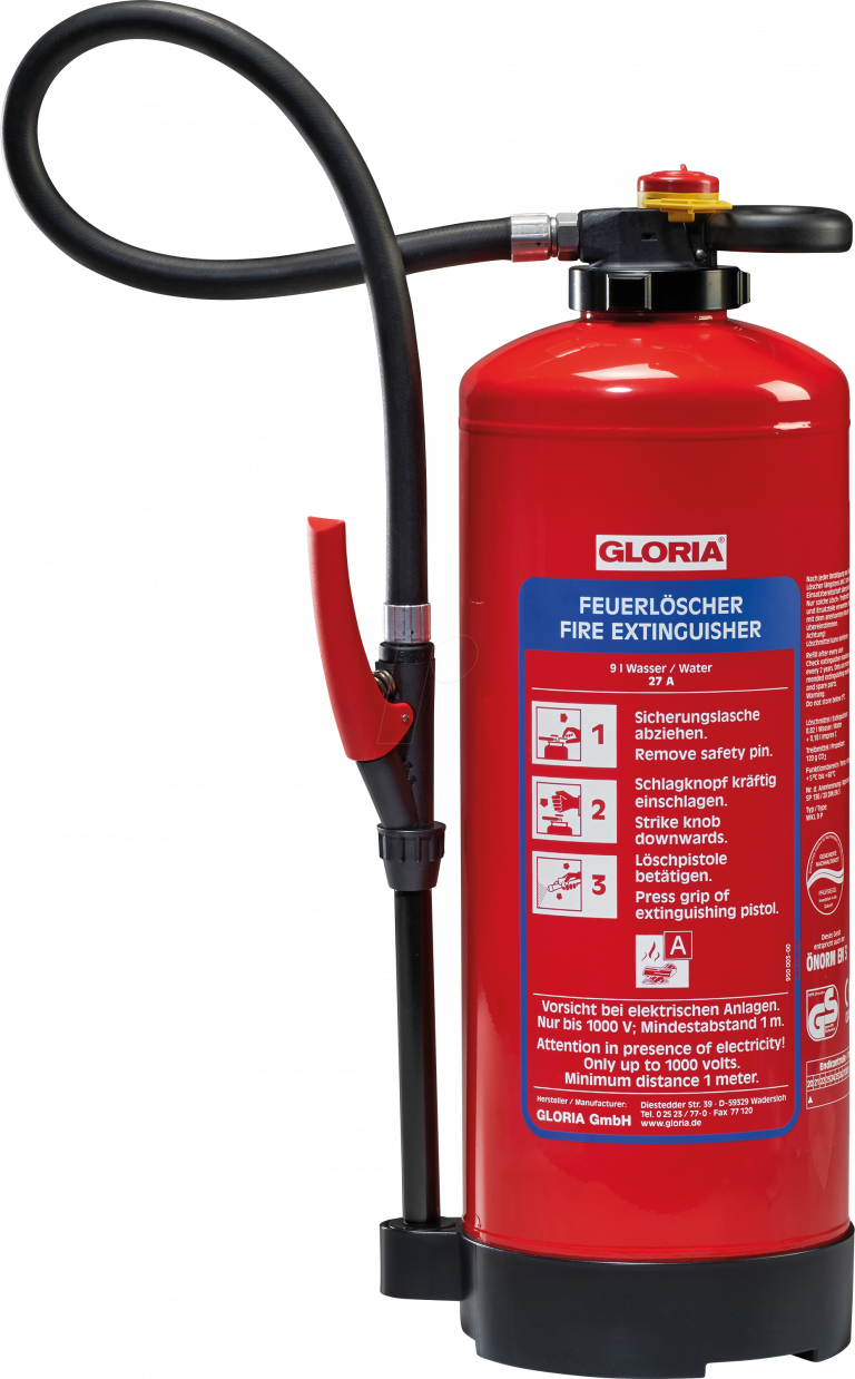 Feuerlöscher mit dem Löschmittel Wasser werden zur Bekämpfung von Bränden der Brandklasse A eingesetzt.